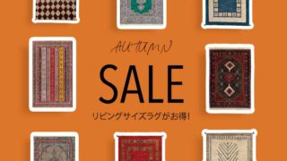 リビングサイズのラグを対象としたセールを、東京2店舗とオンラインショップで同時開催中です。