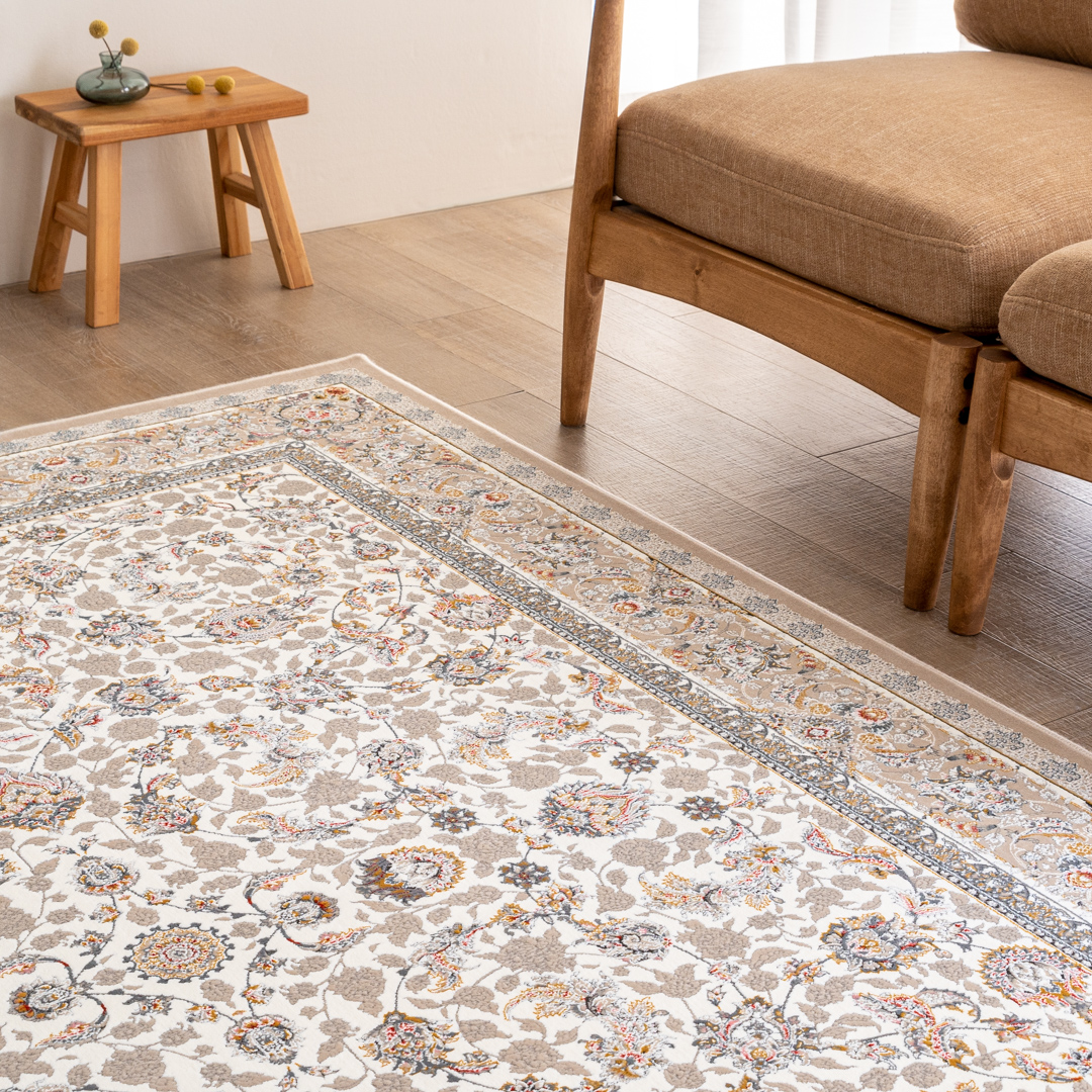 「バーラン」とはイラン(ペルシャ)の言葉で「雨」の意味です。特殊な技術により、花の模様を浮き上がらせて立体感を出しています。ひとり暮らしのお部屋や、アクセントラグとしても使いやすい約1畳サイズです。ベッドサイドに敷くラグとしてもおすすめで、1人掛け用のソファや、コンパクトサイズのソファ前にもぴったり。